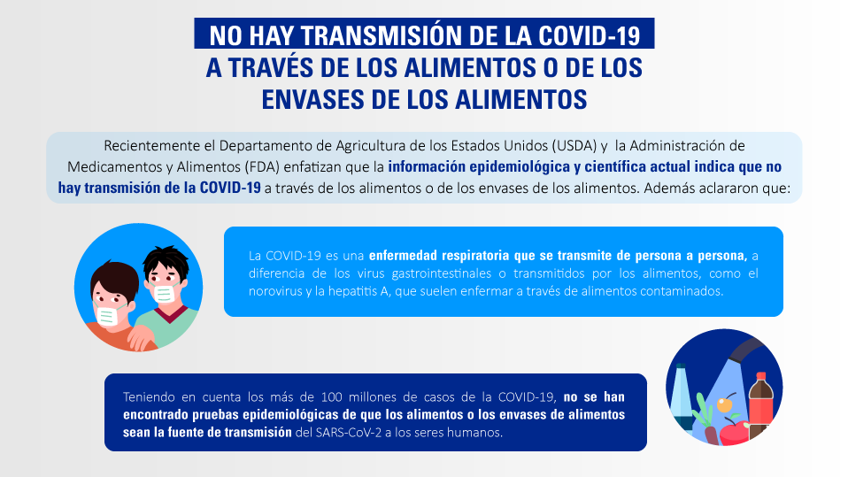 No hay transmisión de COVID-19 a través de alimentos o envases
